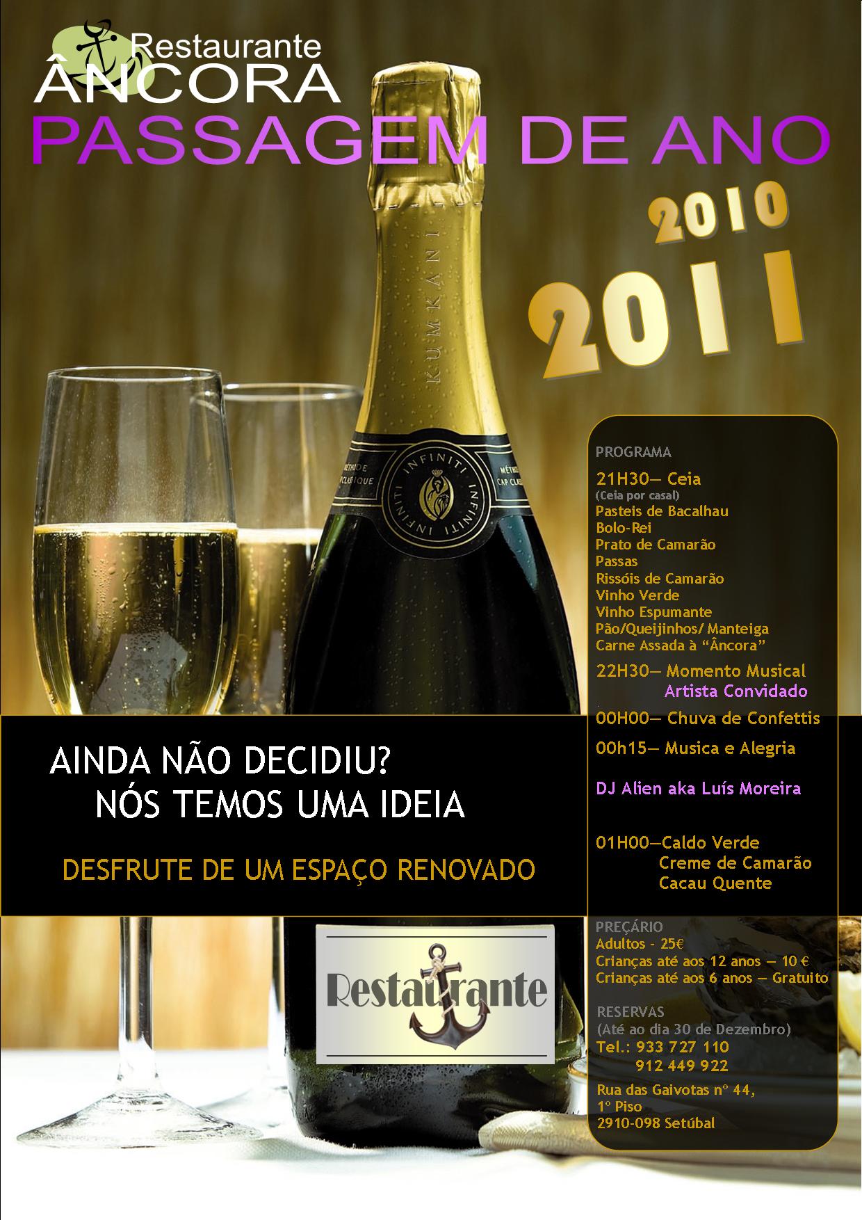 Passe conosco o seu fim de ano, traga a sua familia e amigos, e junte-se anós num ambiente familiar e acolhedor, com uma equipa sempre pronta e atenta ás suas necessidades,conte com a nossa boa disposição e o artista convidado, bem como a boa musica do nosso DJ Kruz.